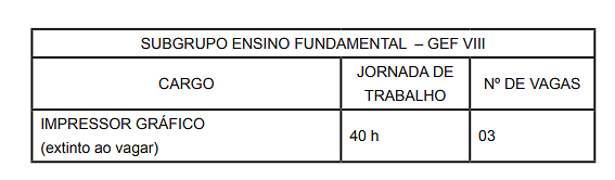 | CARGO | JORNADA DE TRABALHO | Nº DE VAGAS |