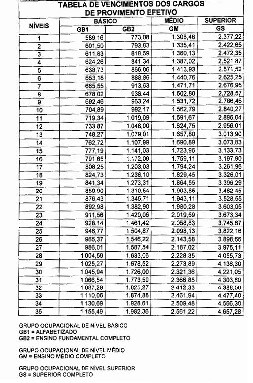 CargoNúmero de cargosCargos PreenchidosCargos VagosCarga horária semanalEscolaridadeExperiência/RequisitosGrupo Ocupacional