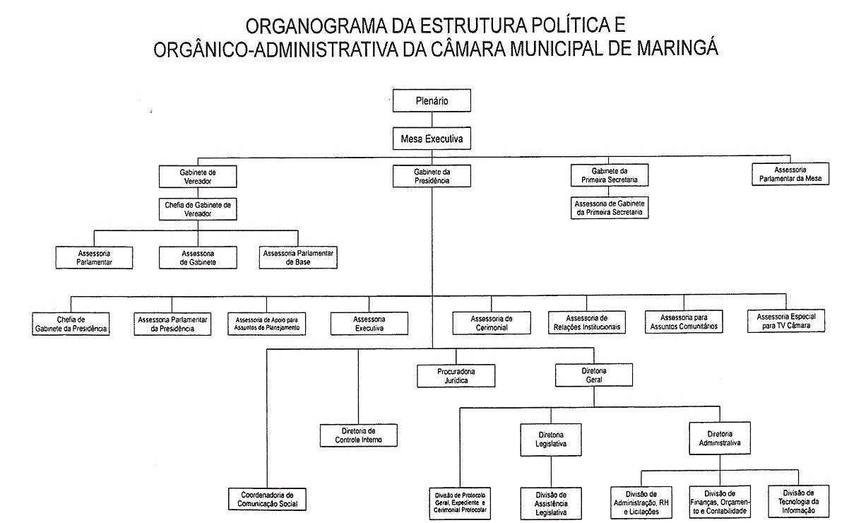 Faz parte desta Lei, na forma do Anexo X, o Organograma da Estrutura Política e Orgânico-Administrativa da Câmara Municipal de Maringá.