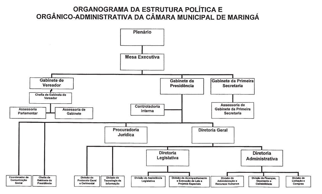 A Câmara Municipal de Maringá, Estado do Paraná, institucionalizada em Poder Legislativo Municipal, define sua organização política e estrutura orgânico-administrativa nos termos desta Lei.