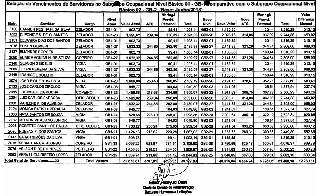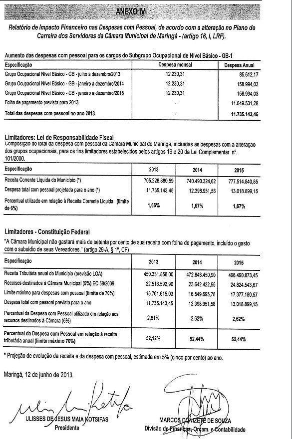 Na qualidade de ordenador de despesas, declaro, em cumprimento ao disposto no artigo 16, inciso II, da Lei Complementar n. 101/2000, que a alteração da classificação de cargos de provimento efetivo em grupos ocupacionais, prevista no Plano de Carreira dos Servidores da Câmara Municipal de Maringá, objeto da presente proposição, tem adequação orçamentária e financeira com a previsão orçamentária anual e é compatível com a Lei de Diretrizes Orçamentárias e com o Plano Plurianual de Ação.